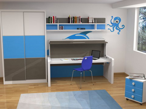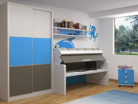 Gran variedad de colores, armarios de puertas correderas, cajonera móvil y estanterías a medida