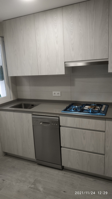 Cocina en veta madera , tirador aluminio
